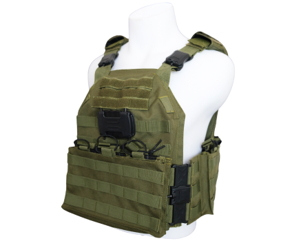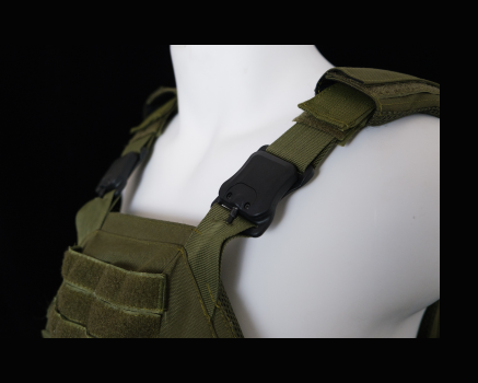 5. 装入防弹插板后,使用背心的织带、松紧带、魔术贴或插扣将其固定到位。确保插板被紧紧固定在适当位置,不会左右晃动。
